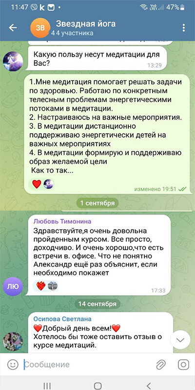 С тех пор саморазвитие и работа с людьми стали моей ежедневной деятельностью: индивидуальный приём, курсы, тренинги.